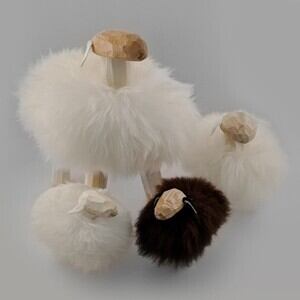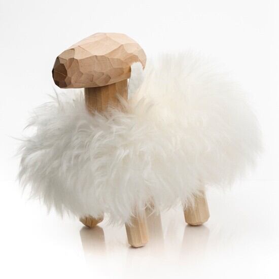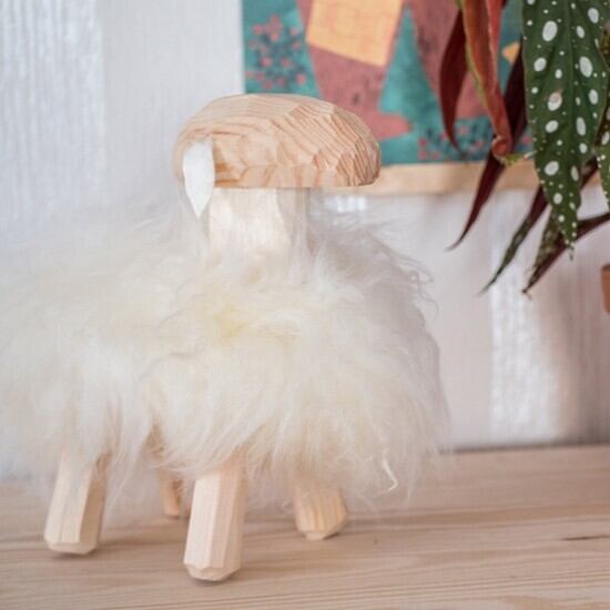 丁寧なハンドメイドの羊の置物。天然木と羊毛のぬくもりが優しい触り心地です。