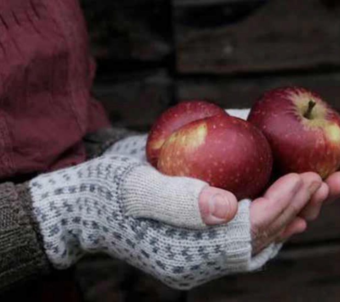 メリノウールのあったかハンドウォーマーは、袖の折り返しが愛らしく指の第2関節ぐらいを覆う長さです。秋口から春先まで活躍。