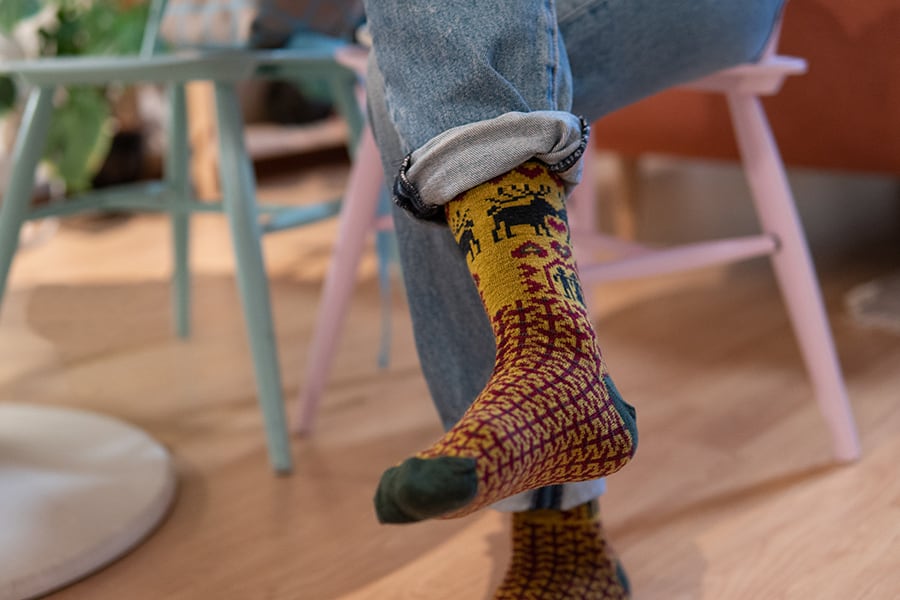 秋冬のおしゃれ靴下としてはもちろん、室内用のルームソックスとしても大活躍です。北欧スウェーデンの伝統が感じられる柄コレクションです。