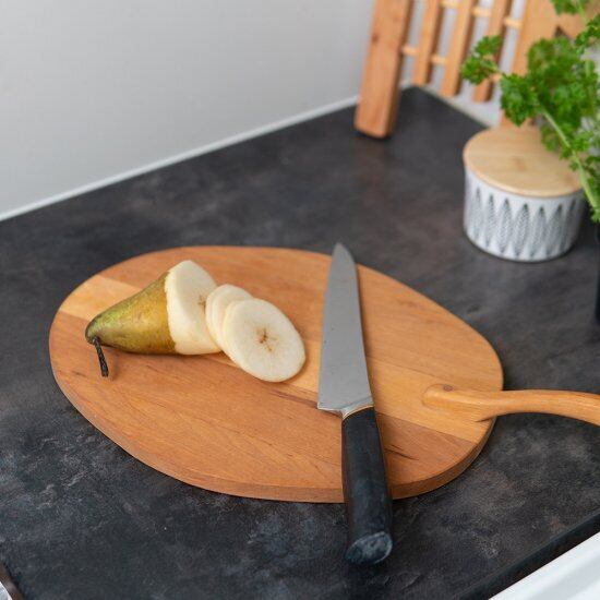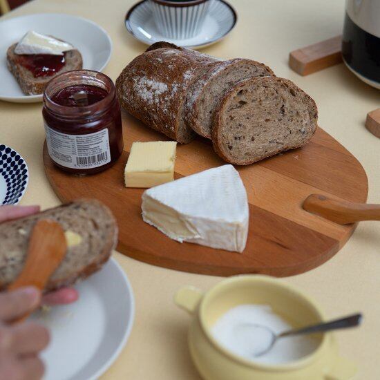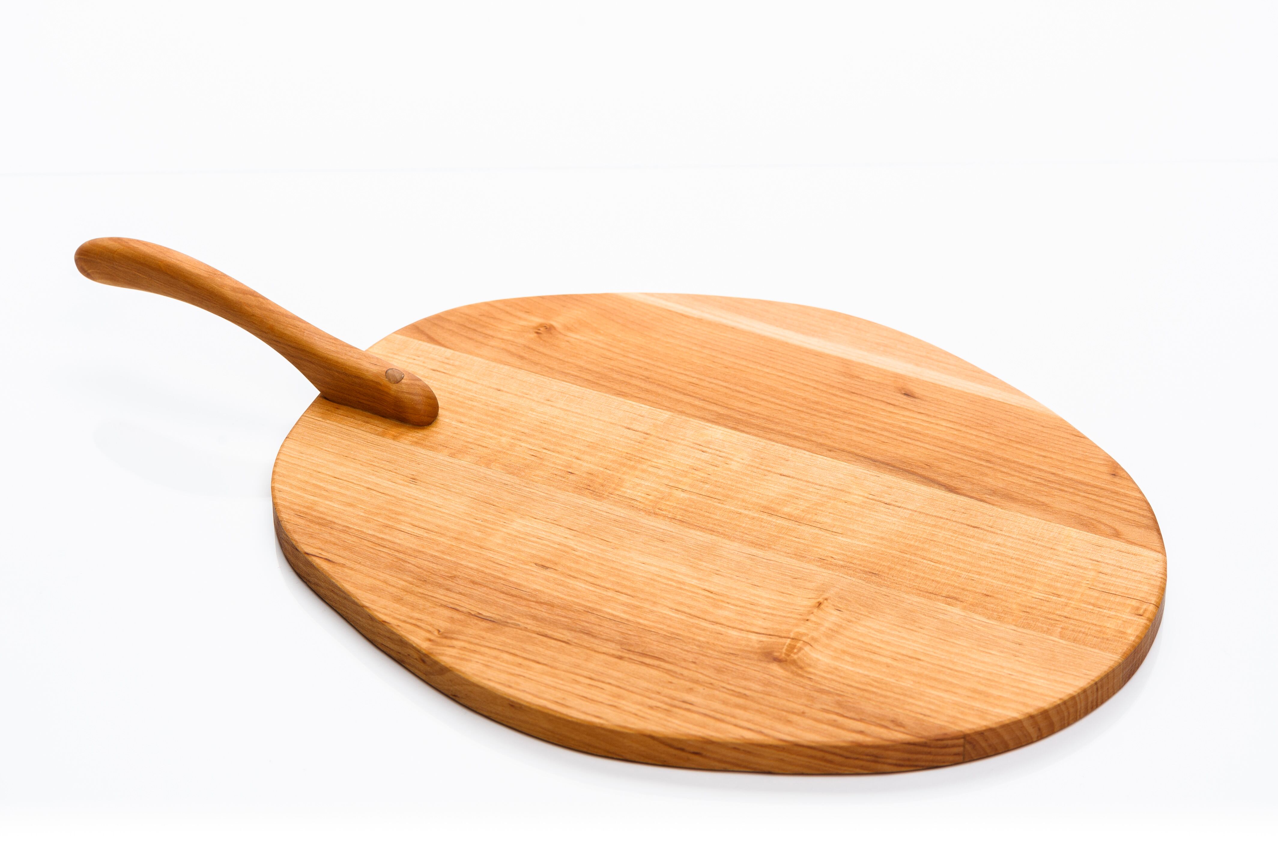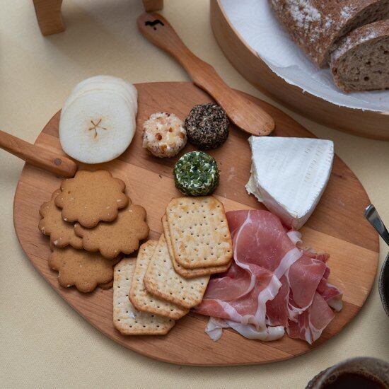 上質な天然木の素材感にいやされる、木製のハンドル付きオードブルトレー。おしゃれなフォルムなので、カッティングボード/まな板としてカットしたパンをそのまま食卓に出すのもすてきです。またチーズやオードブル、フルーツなどをのせるサービングトレーとしても活躍します。